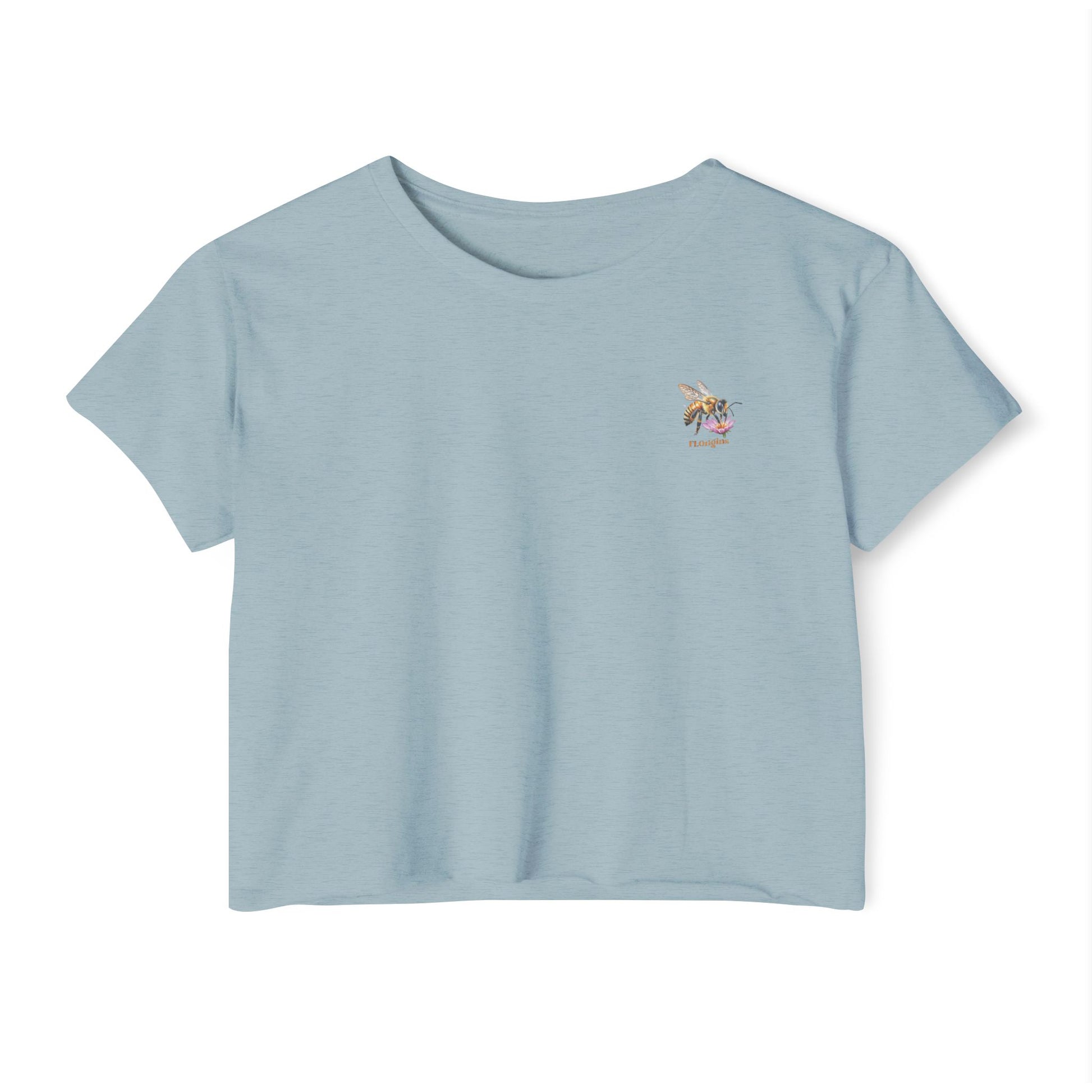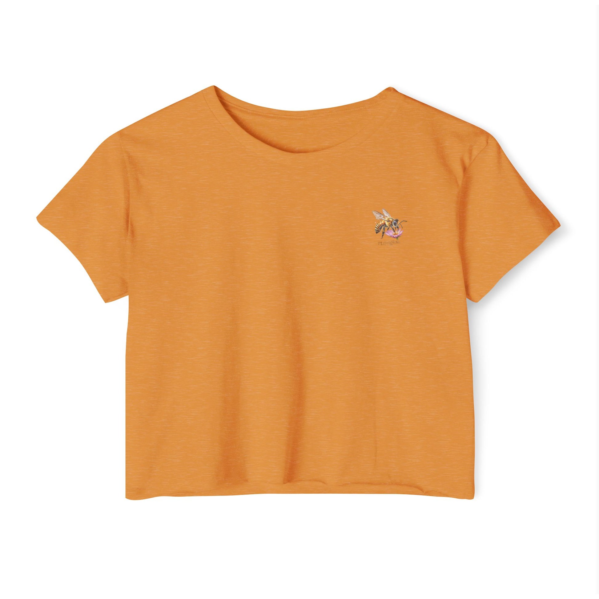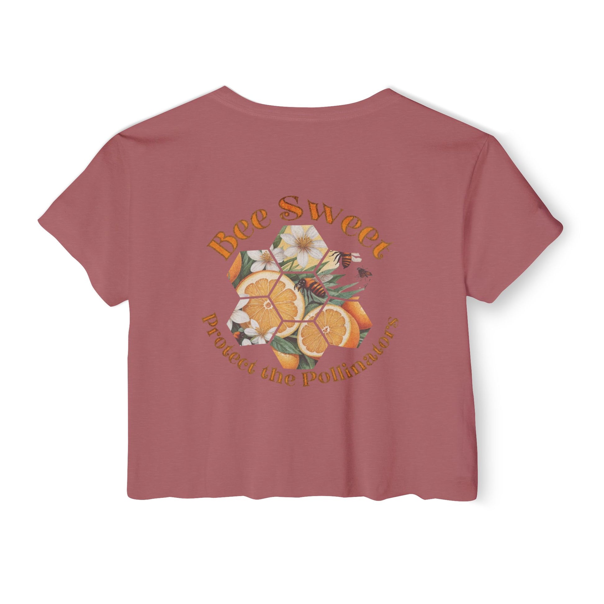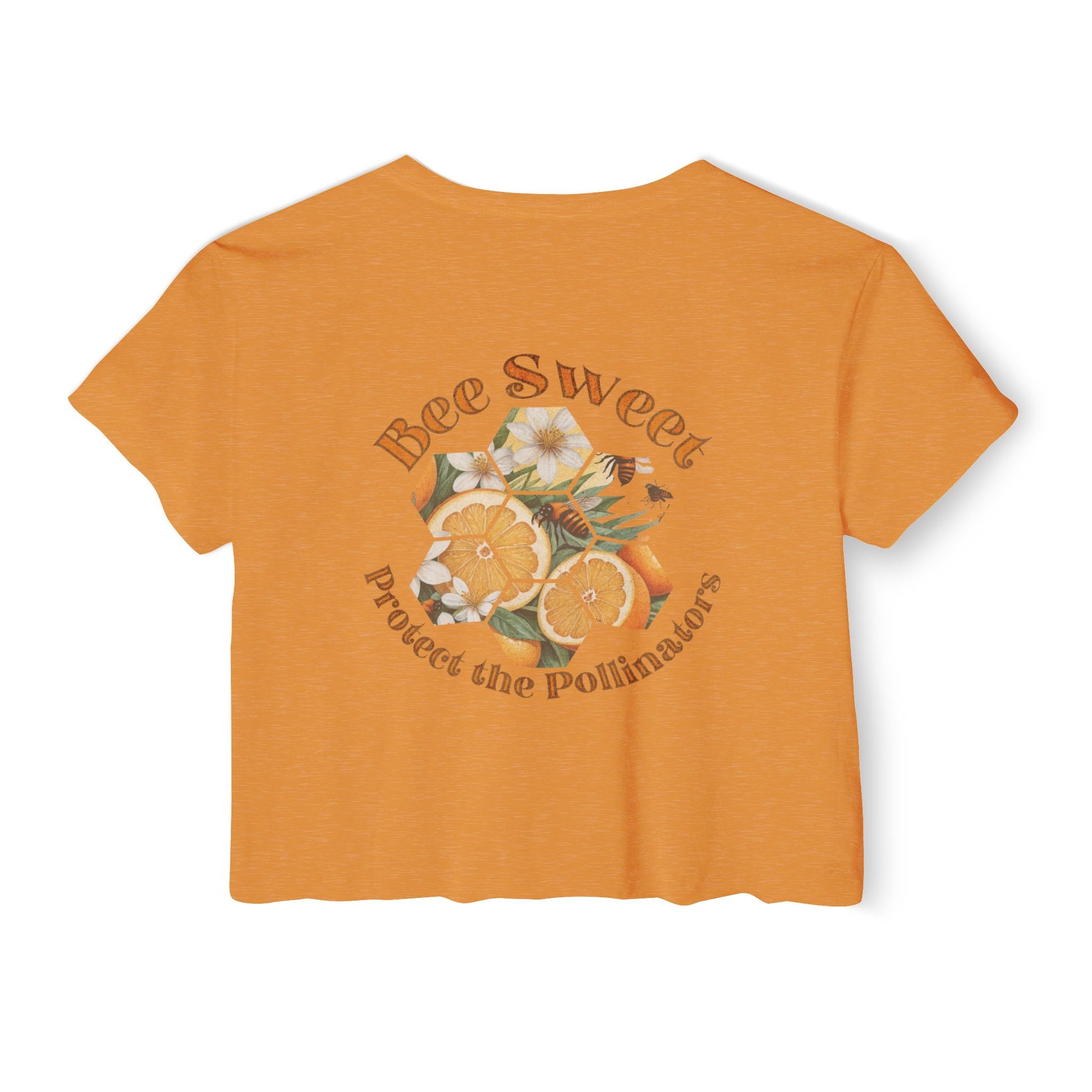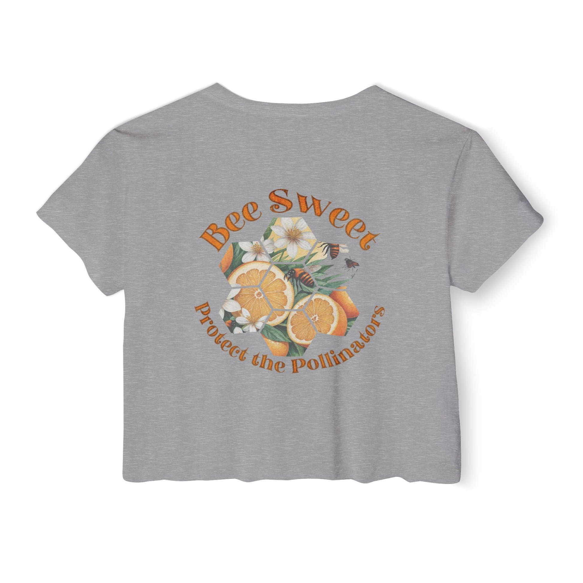 Soft, light, and Florida-proud. The Bee Sweet Crop features citrus, blossoms, and buzzing bees wrapped around the message we live by: Protect the Pollinators.