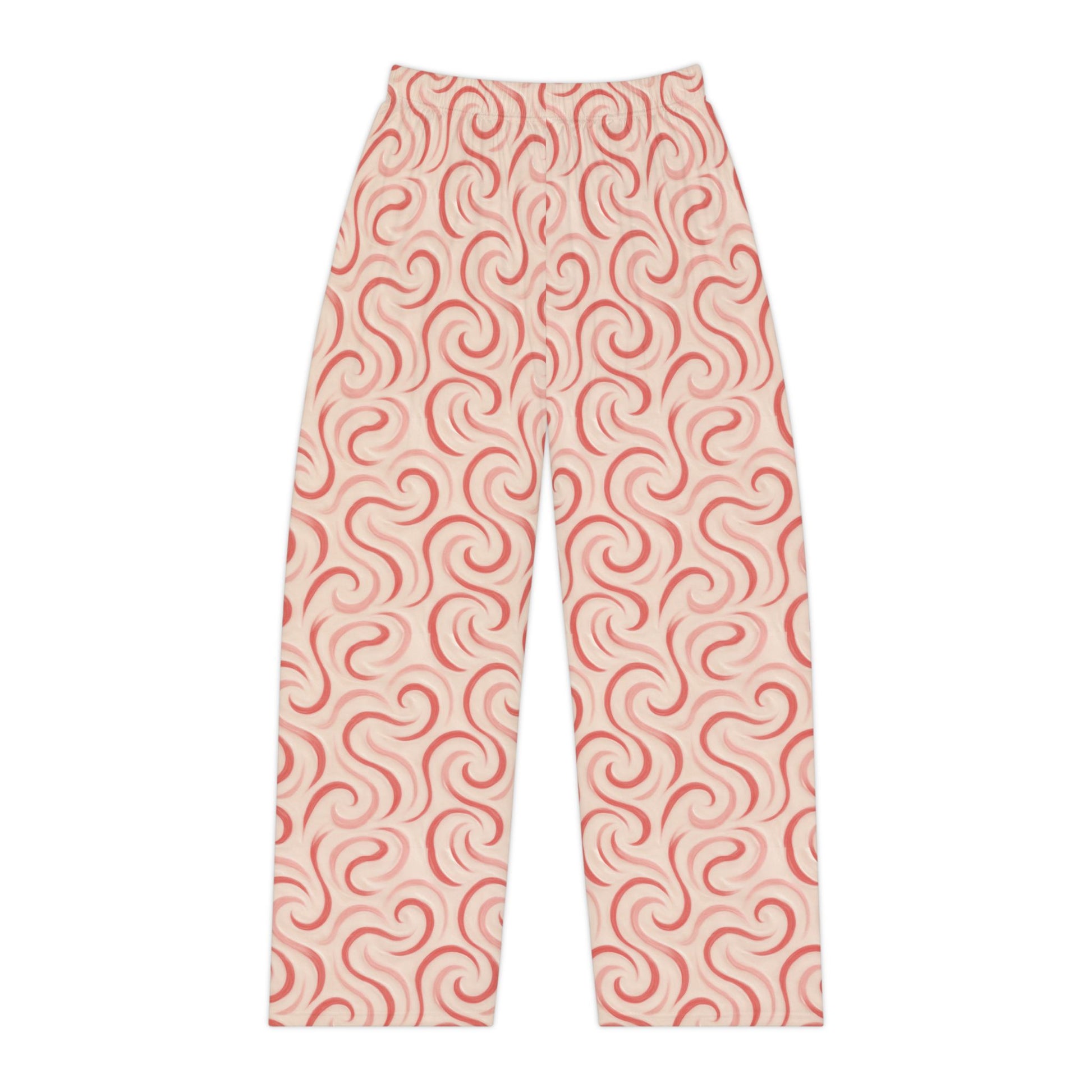 Made from soft brushed polyester, they feel gentle against your skin without being heavy — ideal for warm winters and year-round lounging. The elastic waistband gives you that easy, relaxed fit, while the candy cane swirl design keeps the whole look festive, feminine, and photo-ready. Size and care info is printed inside the waistband for a clean, tagless finish.