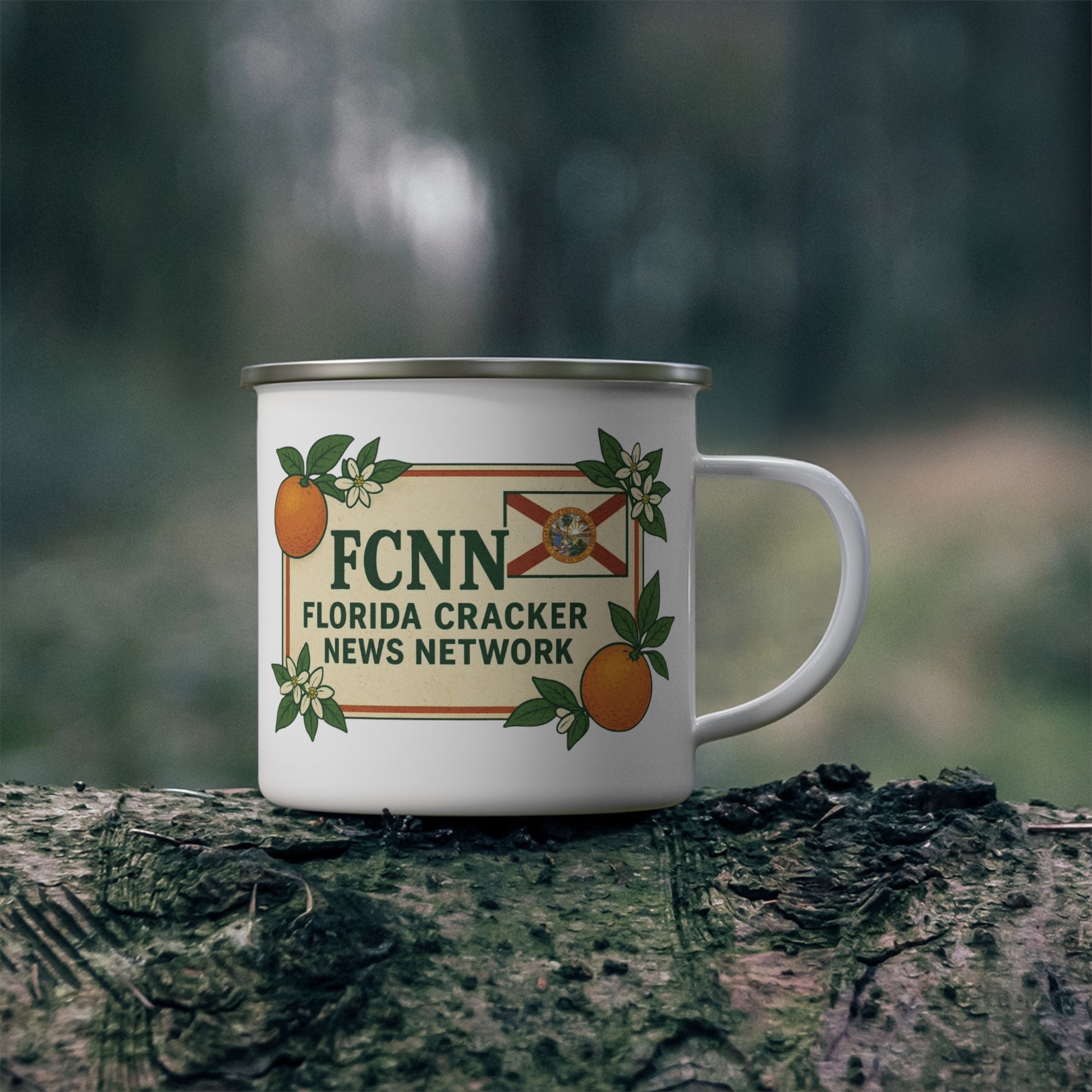 The FCNN Enamel Mug is ready for coffee at dawn, tea at your desk, or cereal on the go—clean, classic, unmistakably Florida.