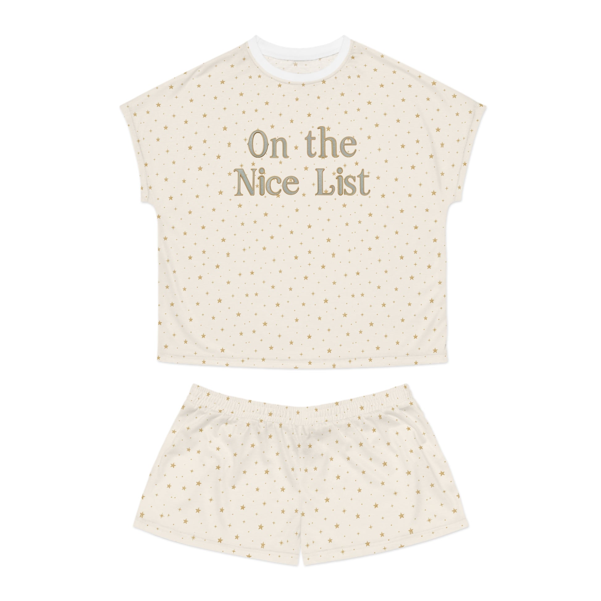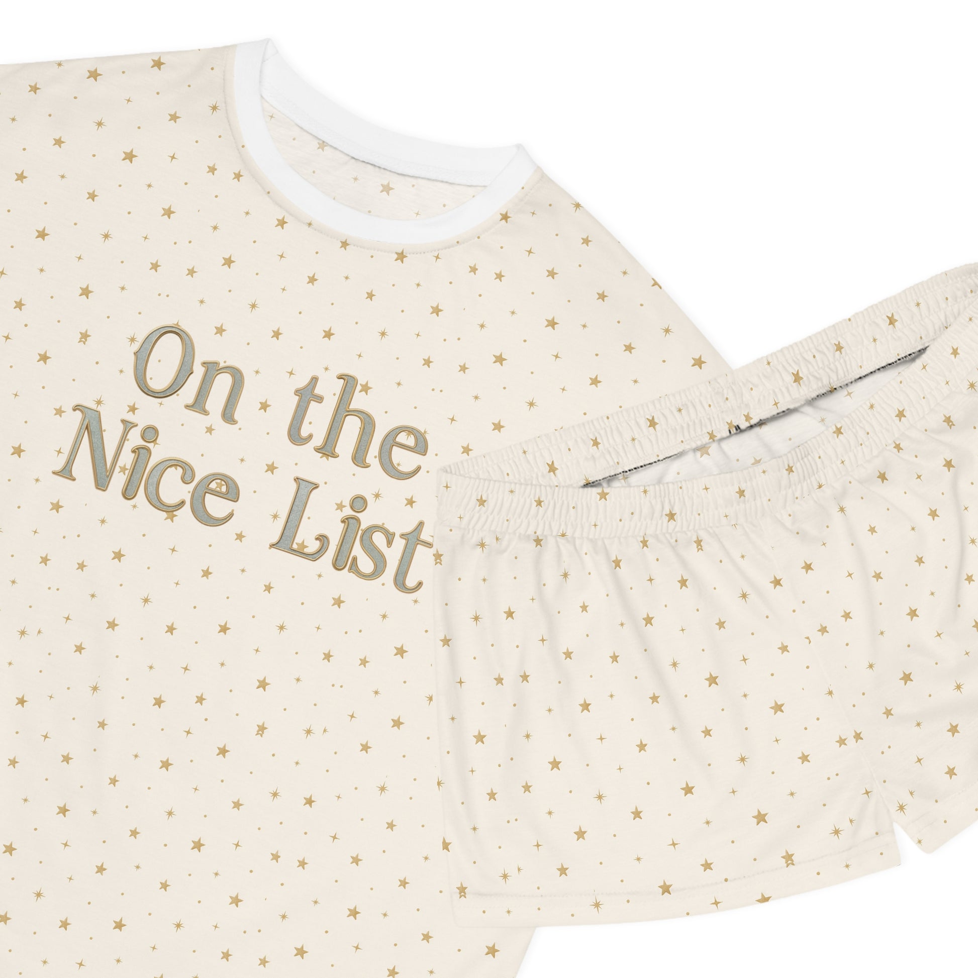 Slip into something soft, sweet, and a little bit celestial with the On the Nice List Lounge Set — a dreamy two-piece designed in our elegant Stardust pattern. Scattered with tiny gold stars on a creamy ivory base, this set brings quiet holiday magic without loud prints or kitschy color. It’s festive, feminine, and luxe in that effortless, understated way.