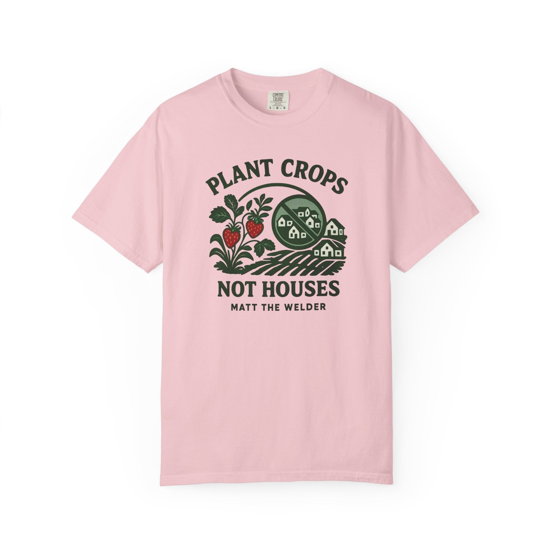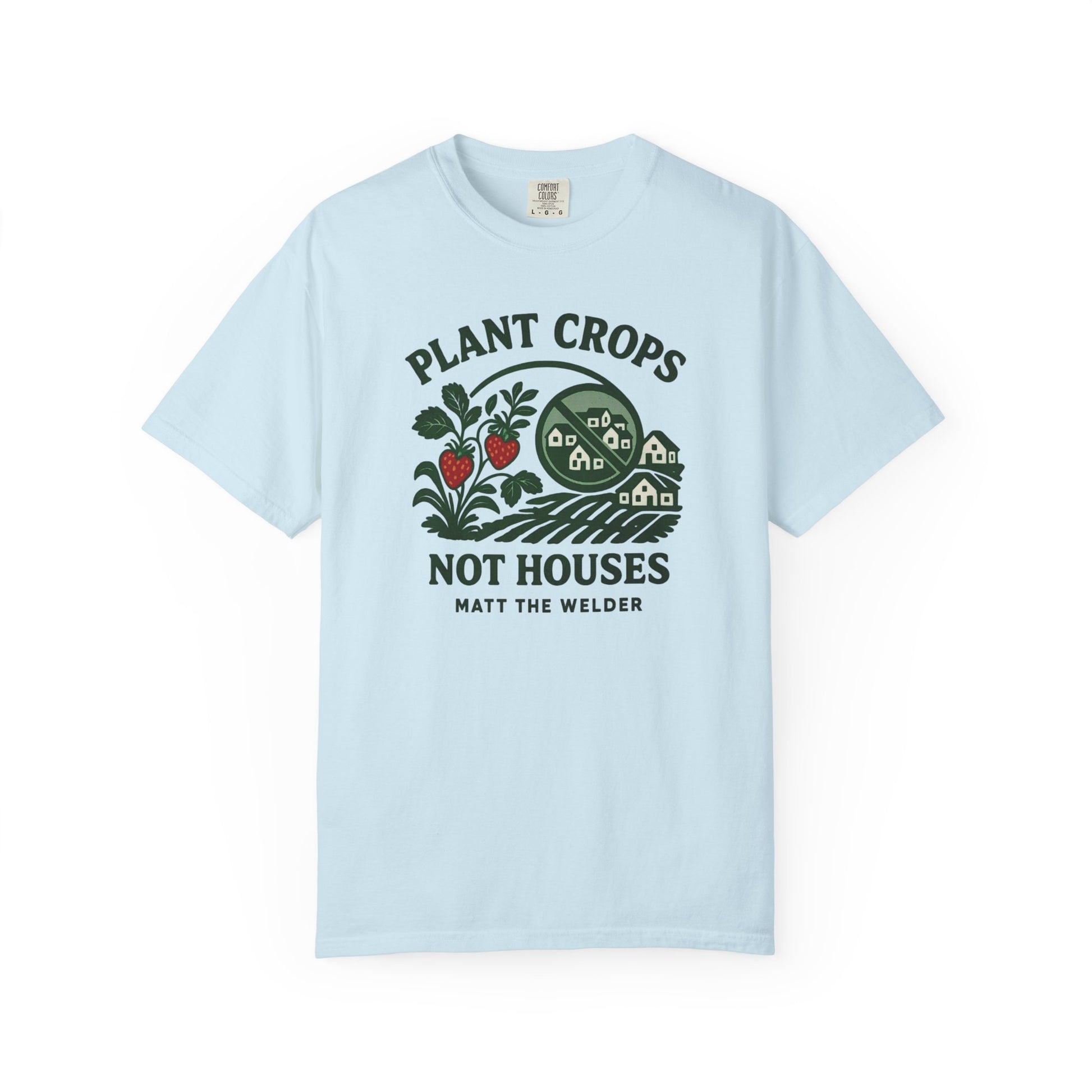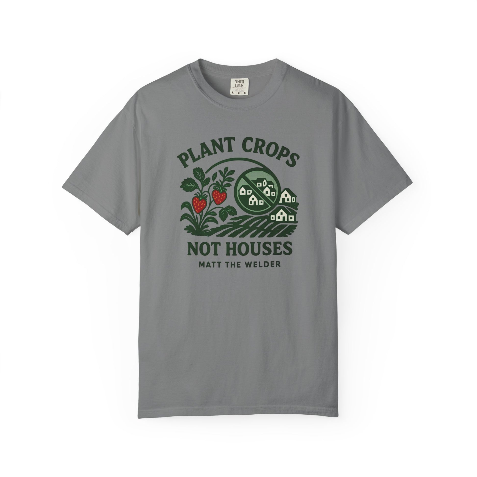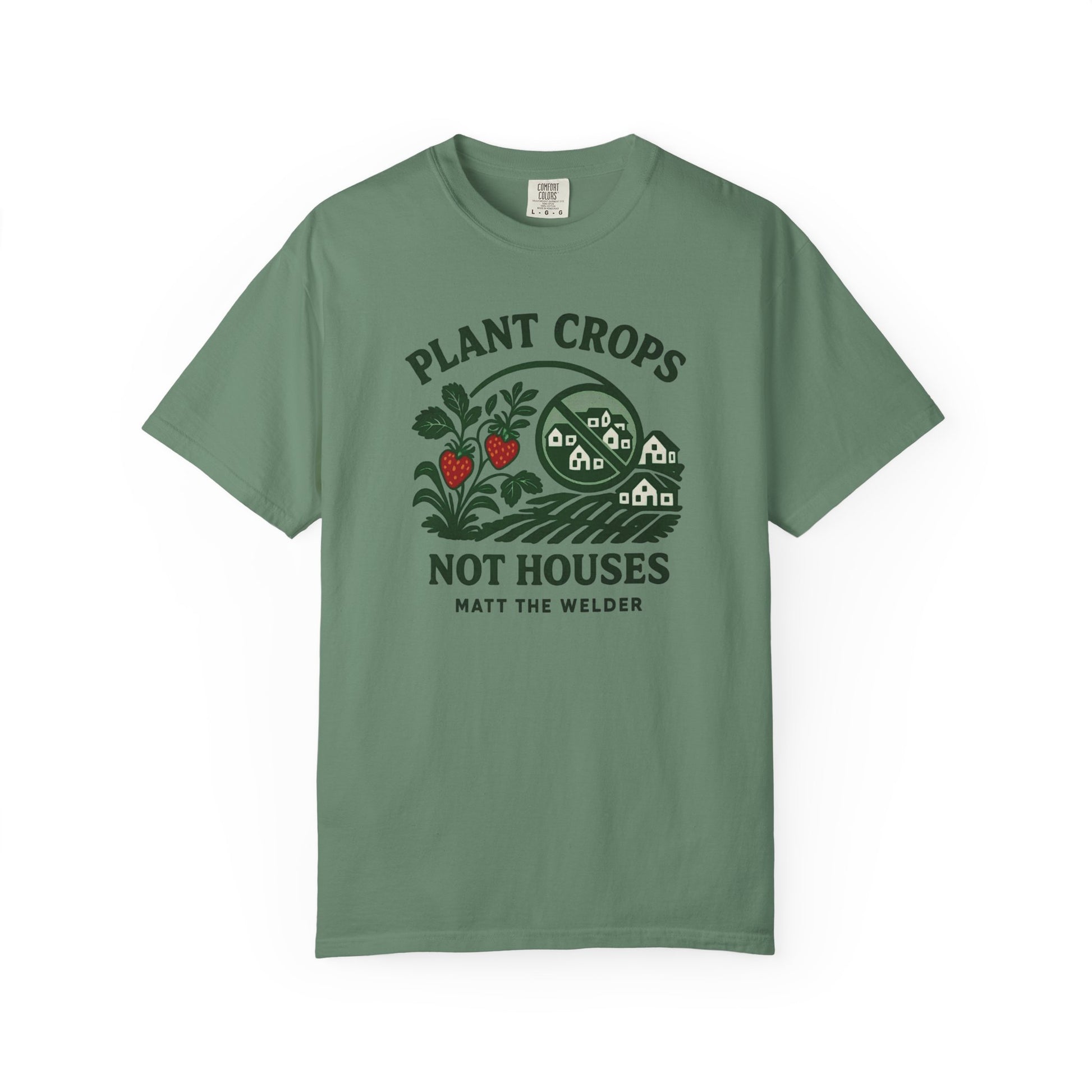 The Plant Crops, Not Houses Tee puts Florida’s priorities front and center—protect farmland, not subdivisions. Bold green artwork with strawberries and homesteads delivers the message clean and unmistakably Matt the Welder.