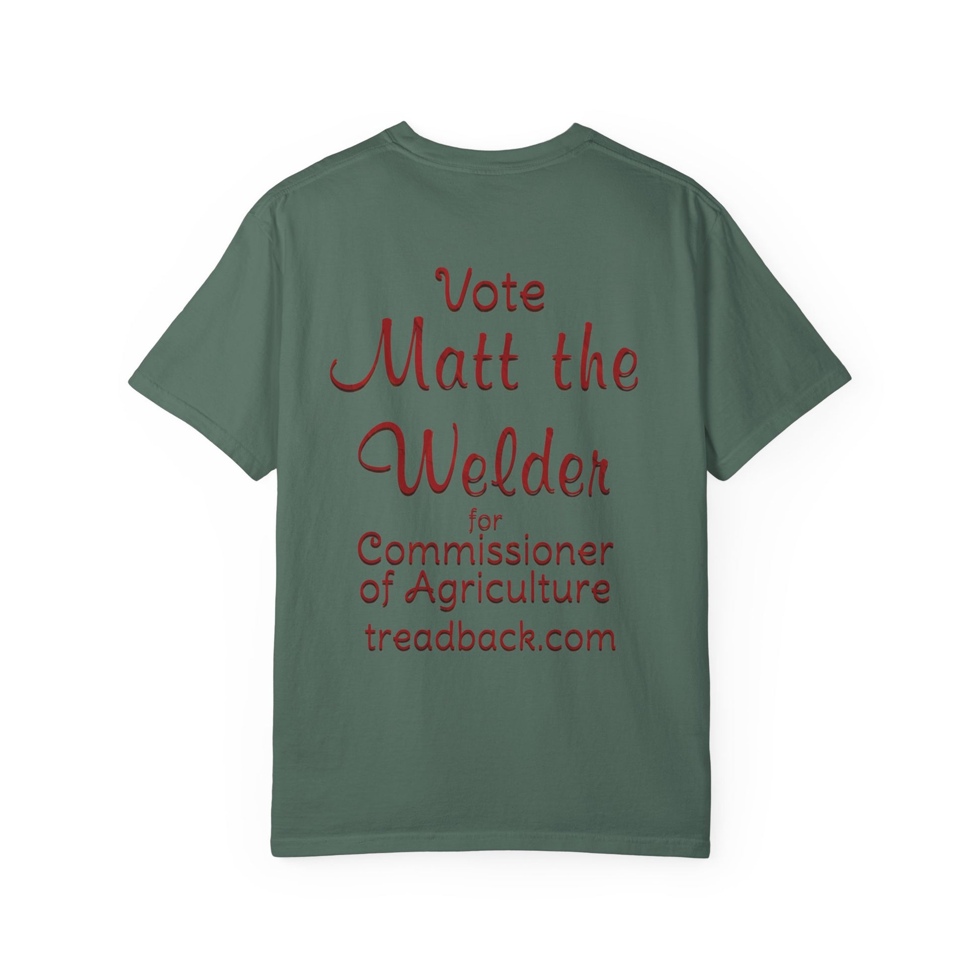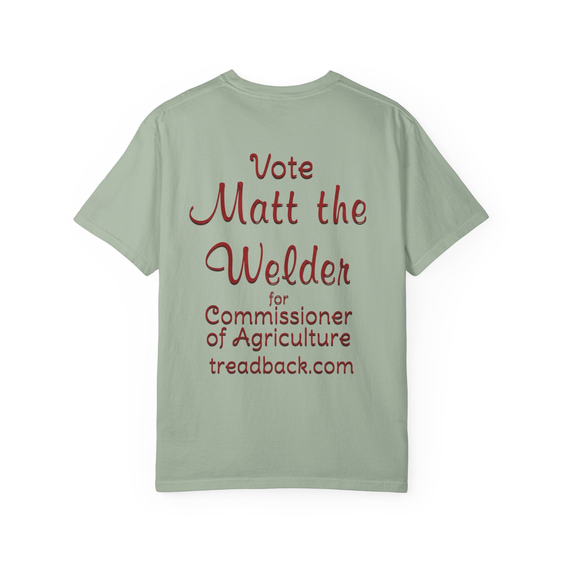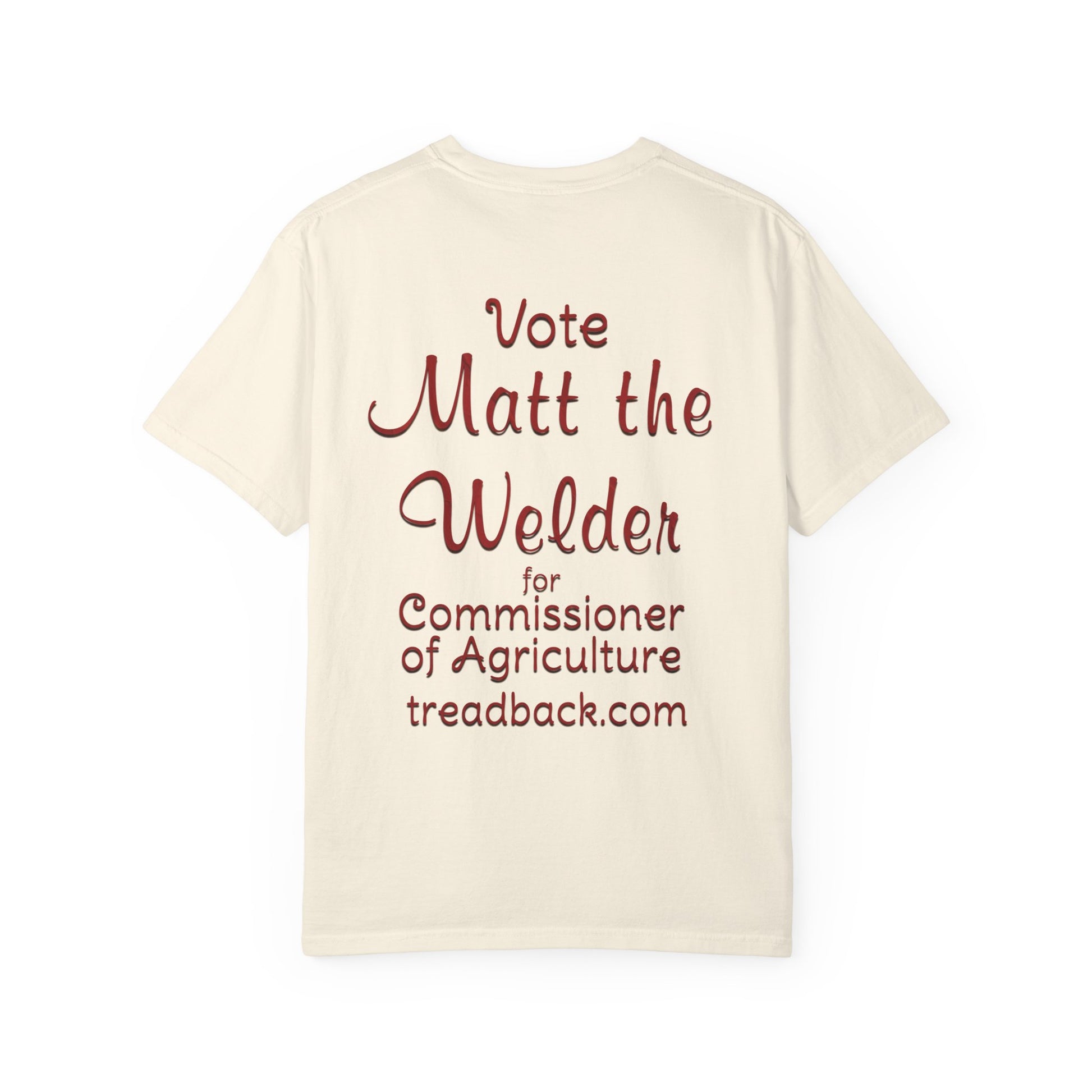 Show your pride in Real Florida with the Rooted in Florida Campaign Tee — an official shirt for Matt the Welder campaign for Florida Commissioner of Agriculture. Featuring a warm, vintage farm scene framed in parchment tones, this design celebrates our agricultural heritage and the people who keep Florida growing strong.