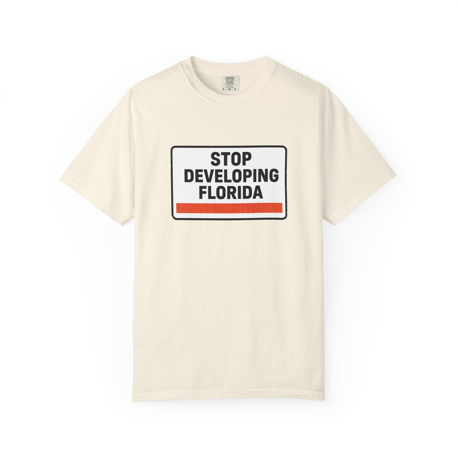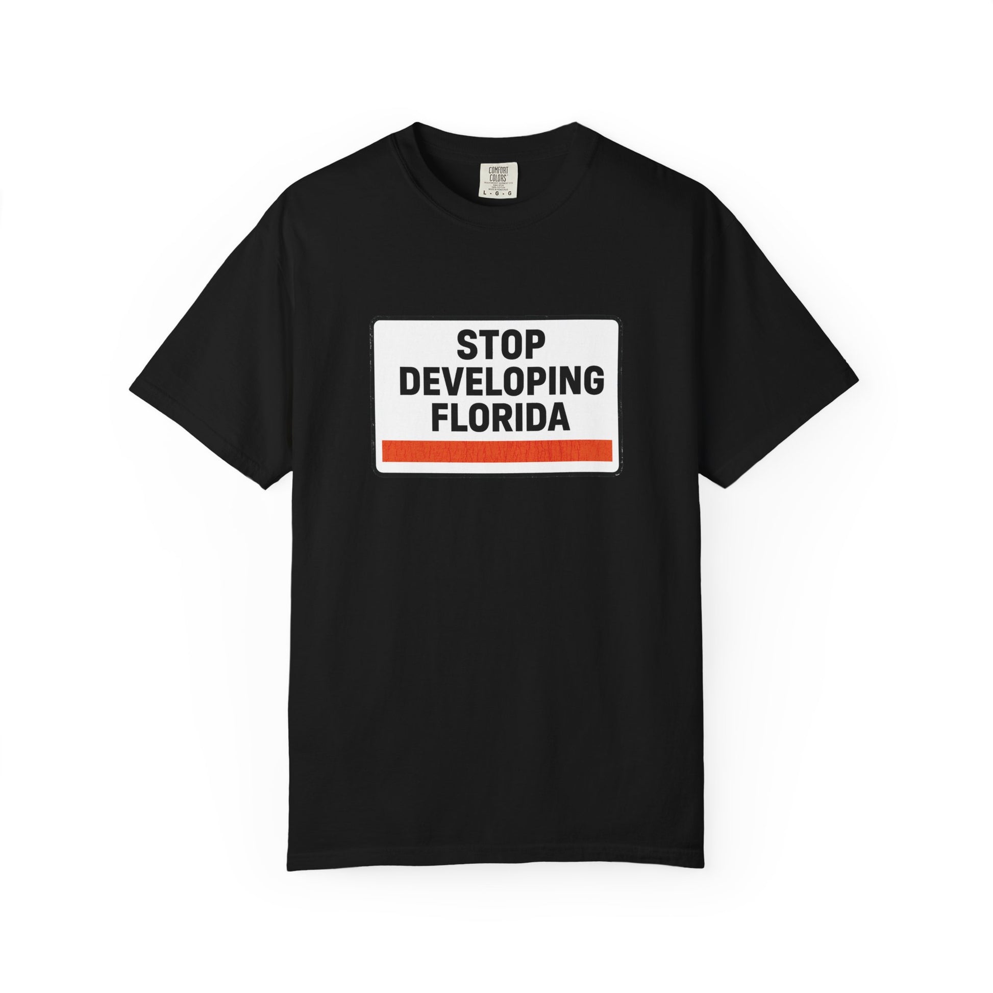 This tee speaks to the people who see what’s happening — the vanishing wetlands, the disappearing wildlife, the nonstop building — and refuse to shrug it off. It’s for locals who show up, stay loud, and fight for what makes Florida home.