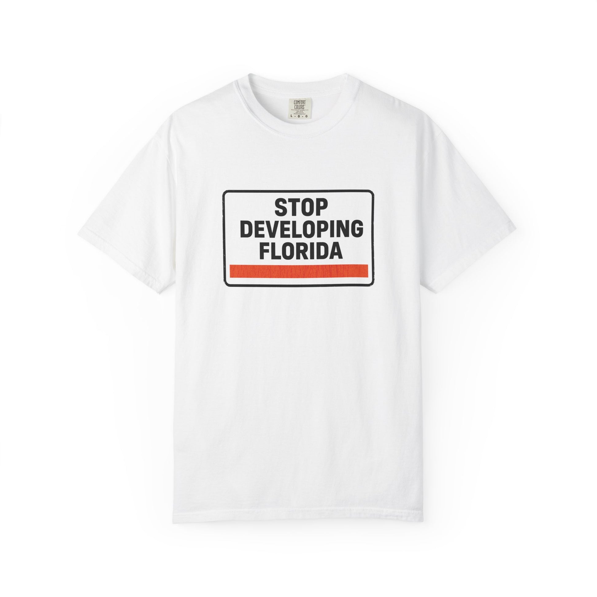 Clean, bright, and unmistakably Florida-strong, this design pulls inspiration from those iconic moving-day graphics and turns it into a message about stopping overdevelopment and keeping Florida wild. Wear it to meetings, errands, protests, road trips, or your next grocery-store conversation about sprawl — it hits every time.