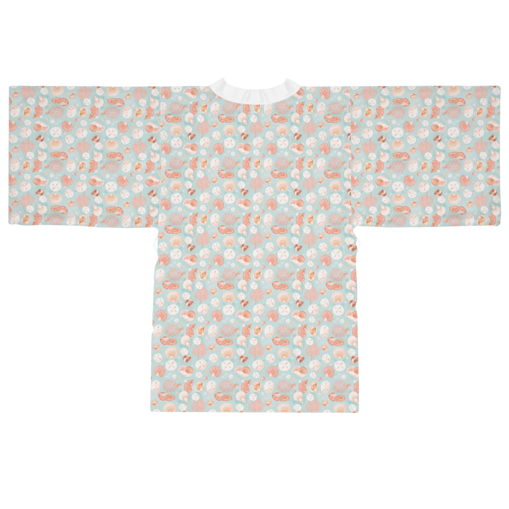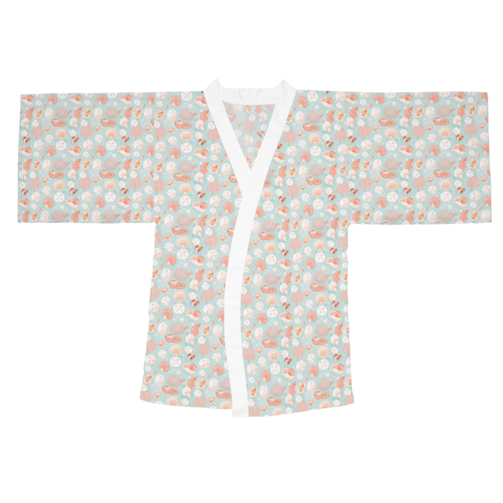 Wrap yourself in seaside serenity with the Seafoam Serenade Kimono Robe — a luxurious layer that feels like a coastal breeze. This silky, lightweight robe features soft watercolor seashells, coral fans, and sand dollars drifting across a pale sea-glass background. Designed for effortless comfort and elegance, it’s perfect for slow mornings, evening rituals, or quiet escapes inspired by the rhythm of the tide.