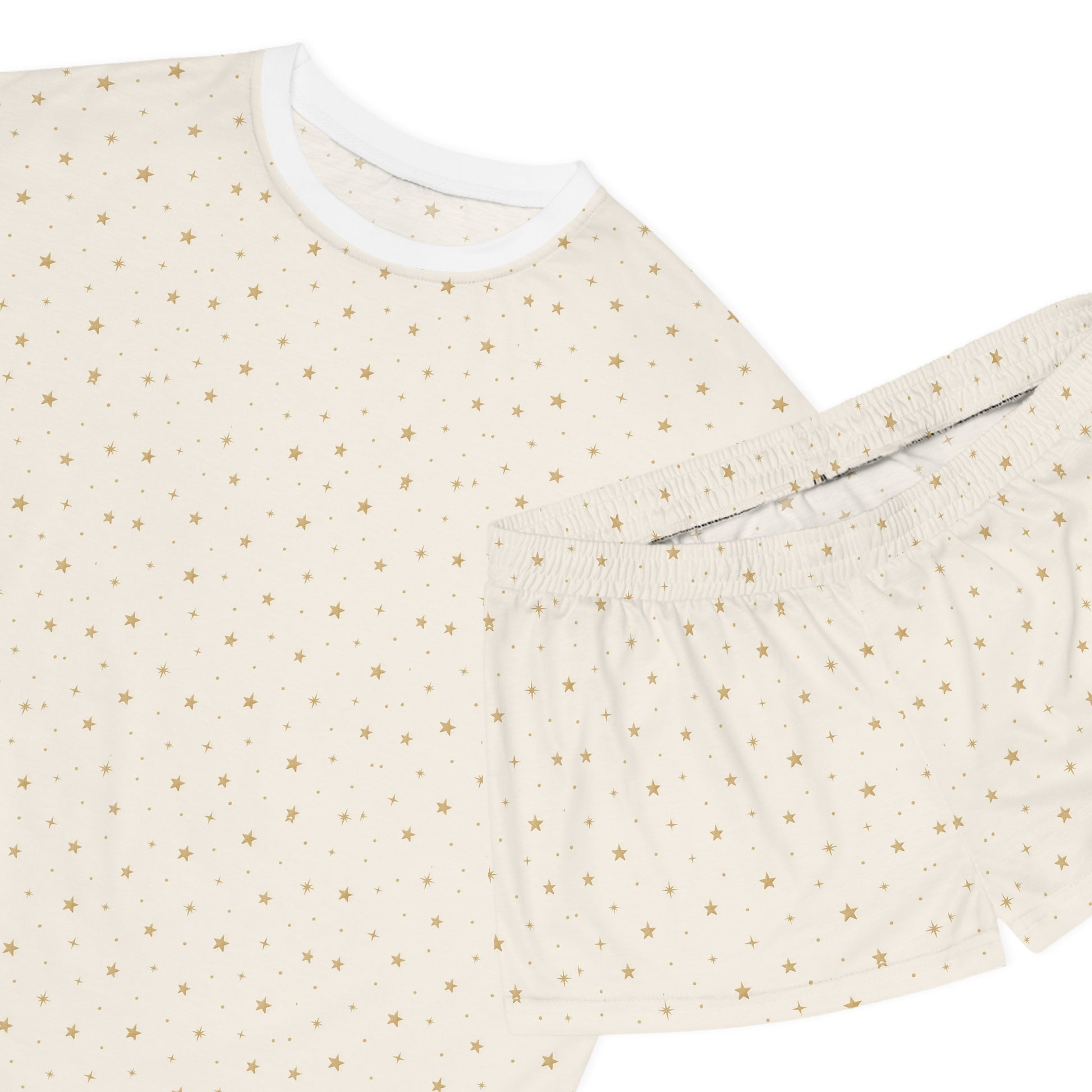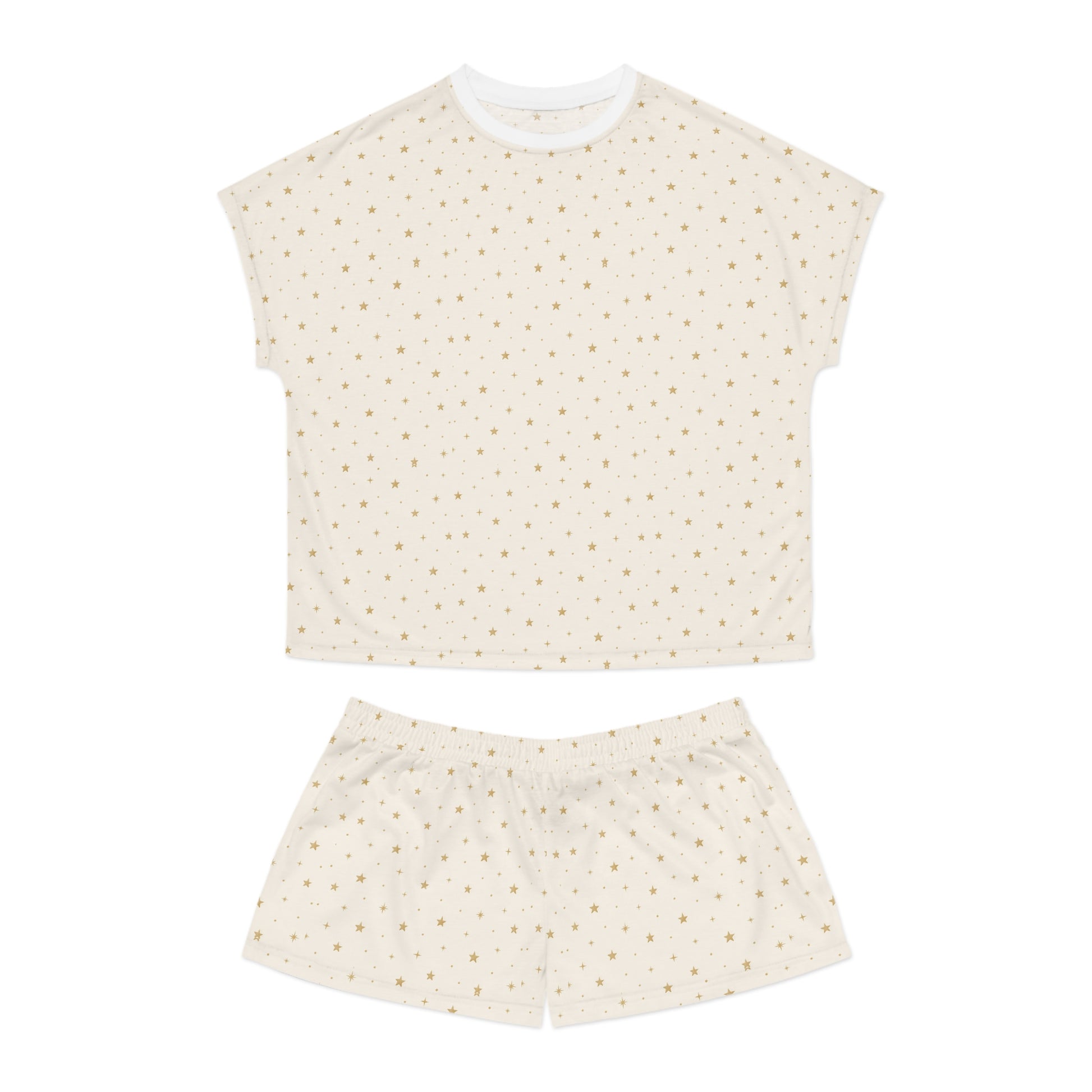 Slip into something soft, sweet, and a little bit celestial with the Stardust Lounge Set — a dreamy two-piece designed in our elegant Stardust pattern. Scattered with tiny gold stars on a creamy ivory base, this set brings quiet holiday magic without loud prints or kitschy color. It’s festive, feminine, and luxe in that effortless, understated way.