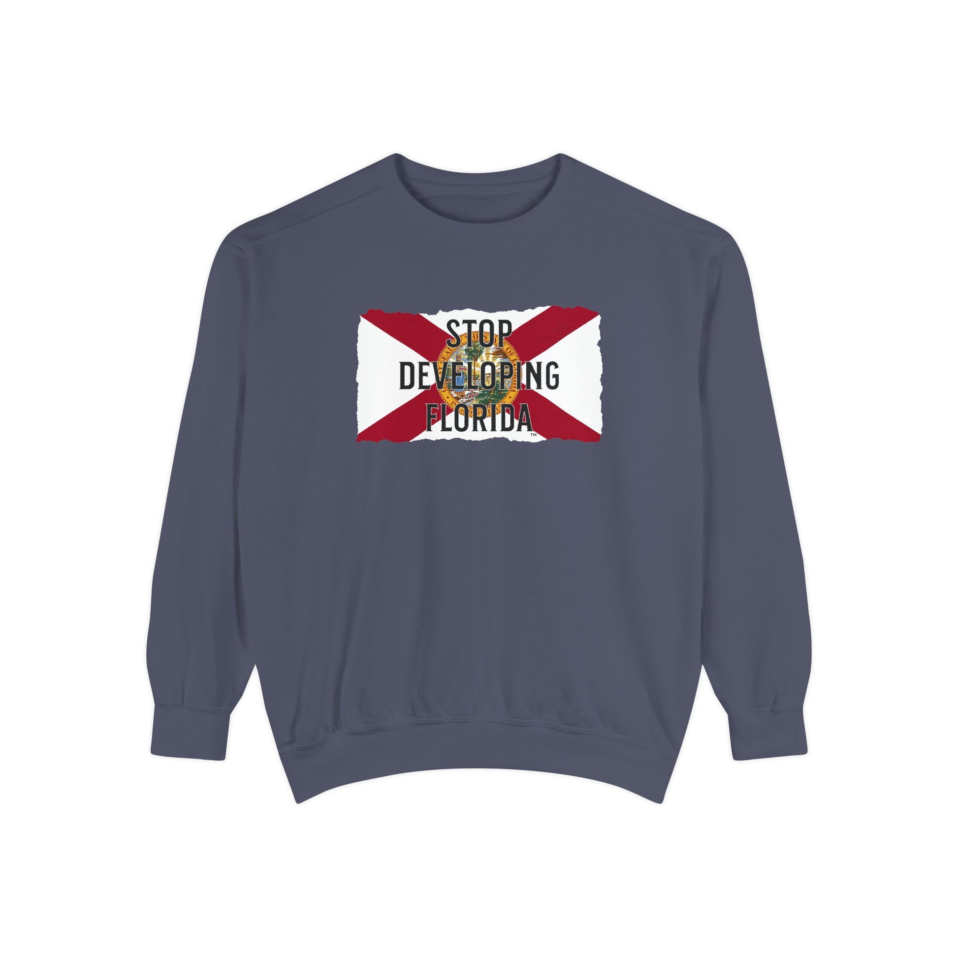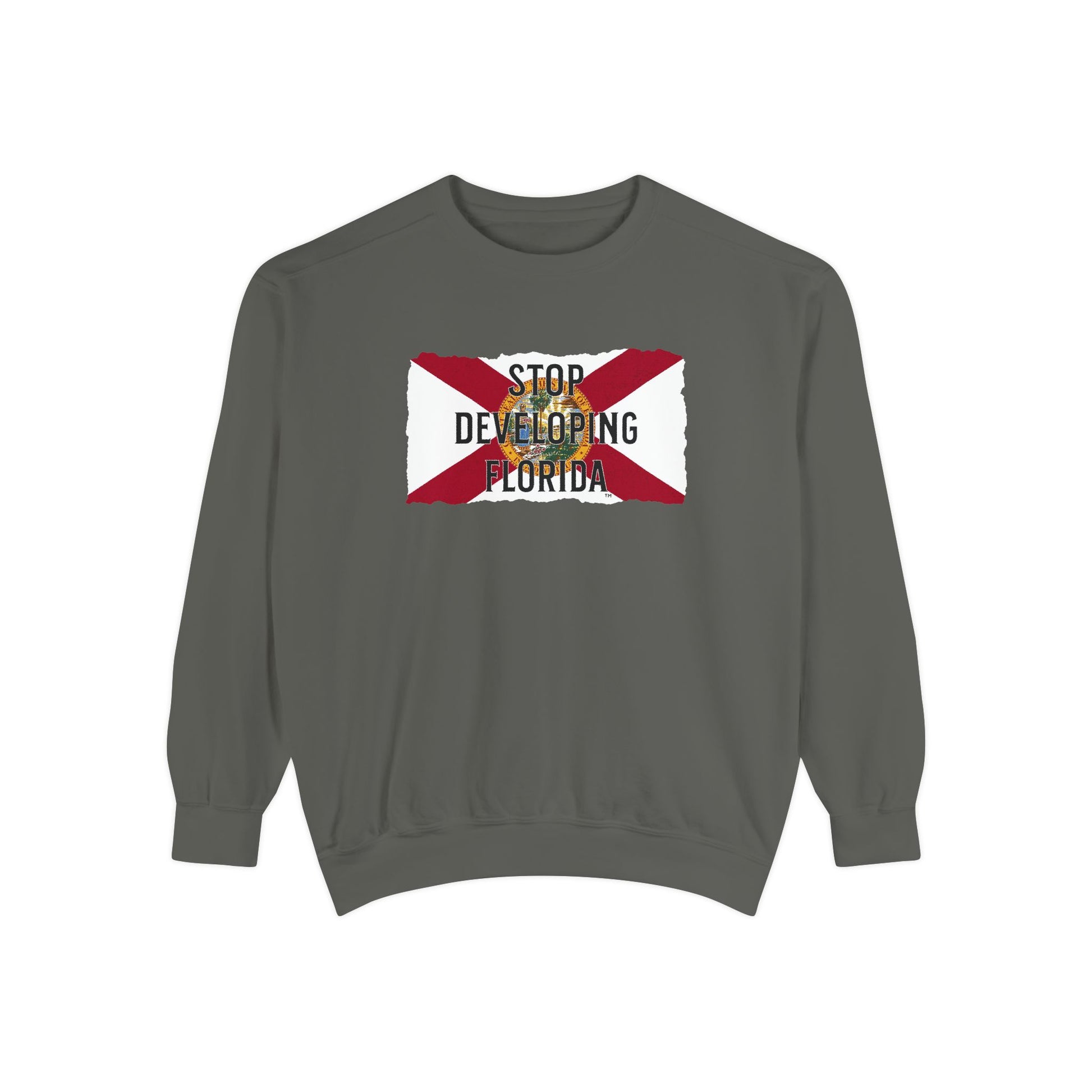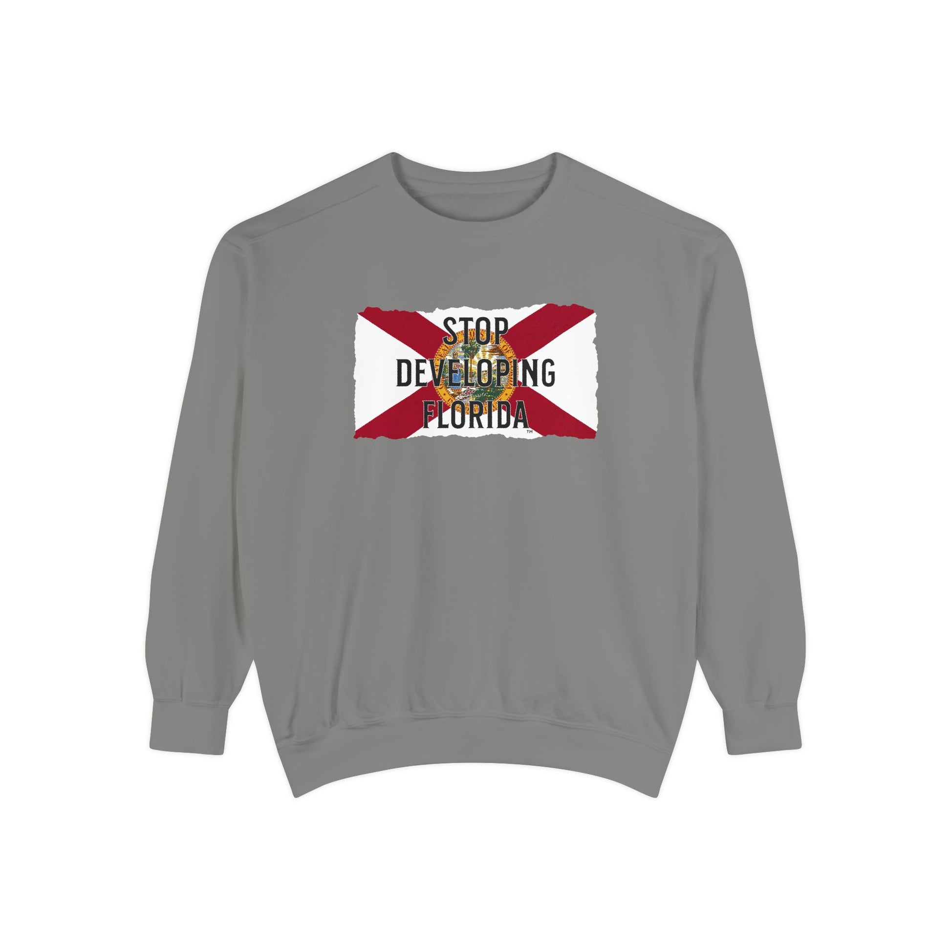 Make your stand for Real Florida in comfort that lasts. The Stop Developing Florida Sweatshirt pairs everyday wearability with a bold message that speaks for everyone tired of watching the state get paved over. Soft, durable, and perfectly broken-in, it’s your go-to layer for cool mornings, community meetings, or kicking back after a cleanup.