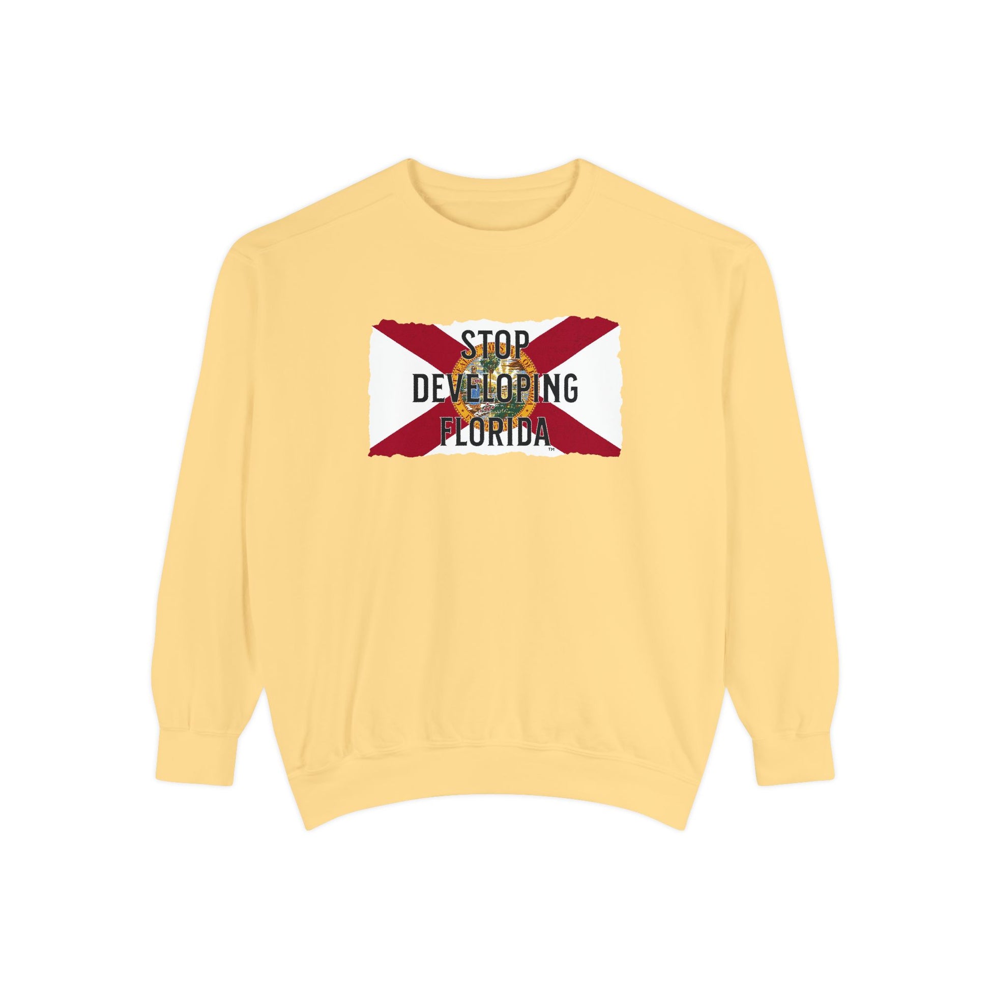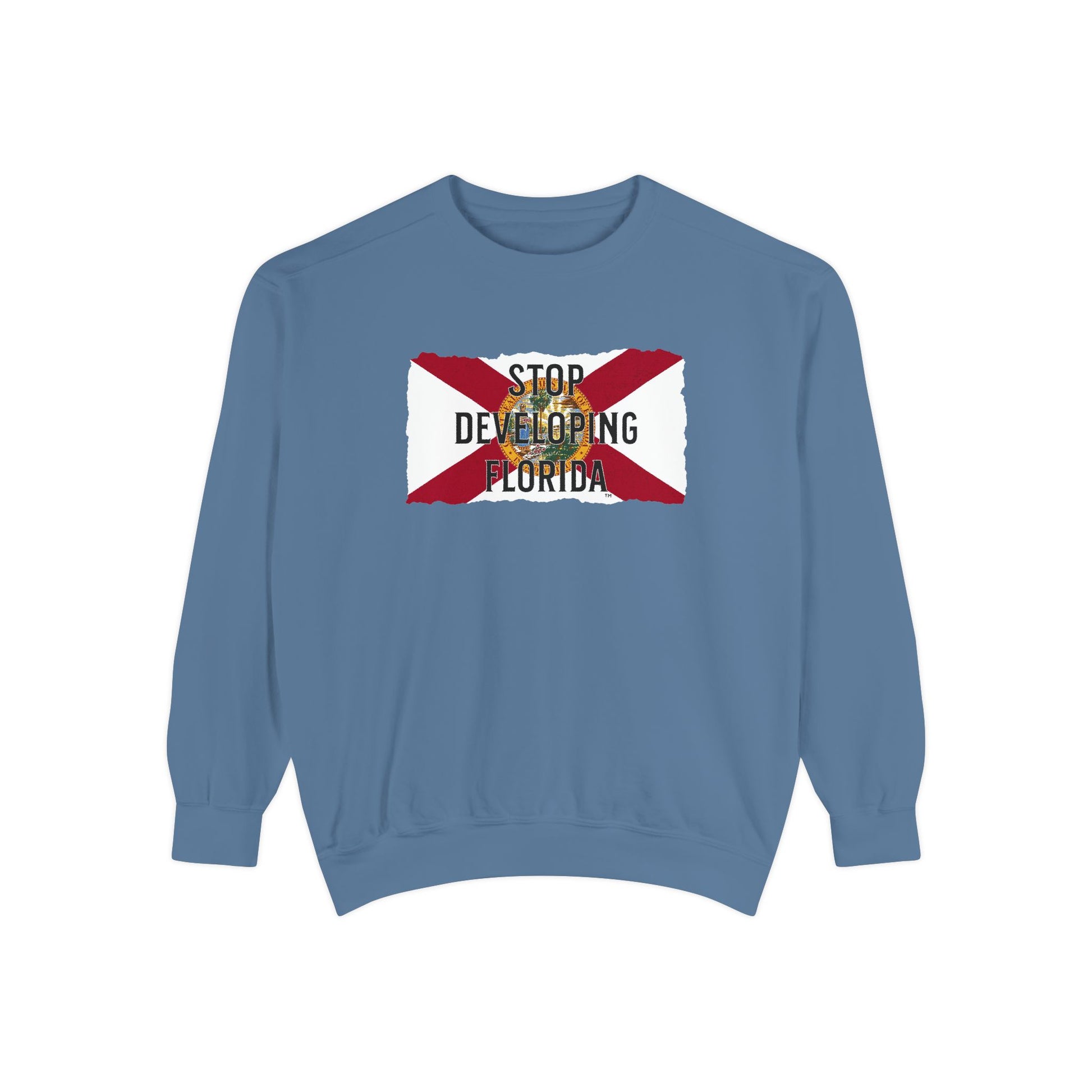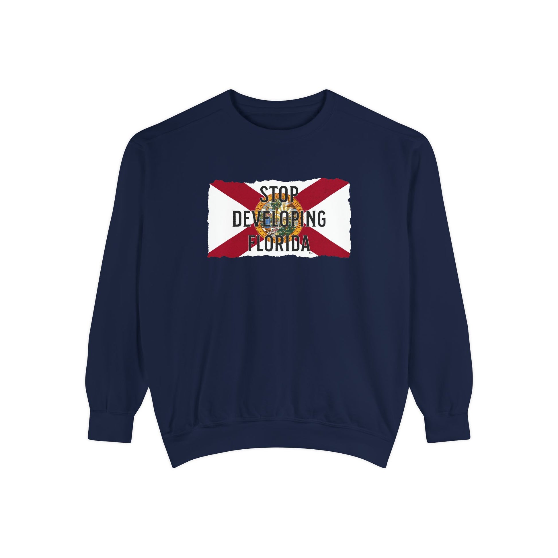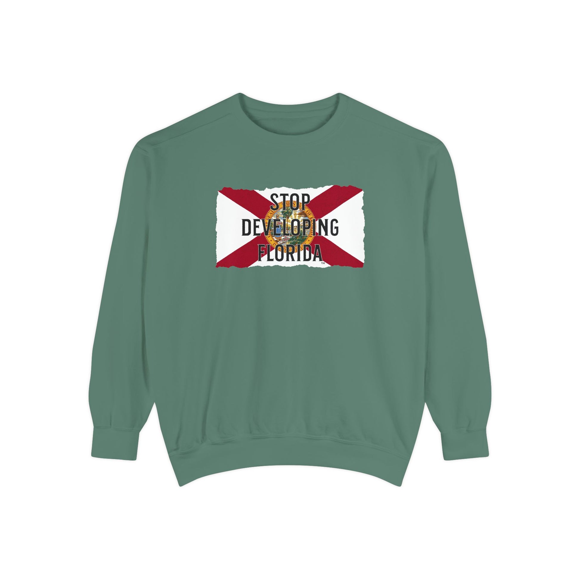 Make your stand for Real Florida in comfort that lasts. The Stop Developing Florida Sweatshirt pairs everyday wearability with a bold message that speaks for everyone tired of watching the state get paved over. Soft, durable, and perfectly broken-in, it’s your go-to layer for cool mornings, community meetings, or kicking back after a cleanup.