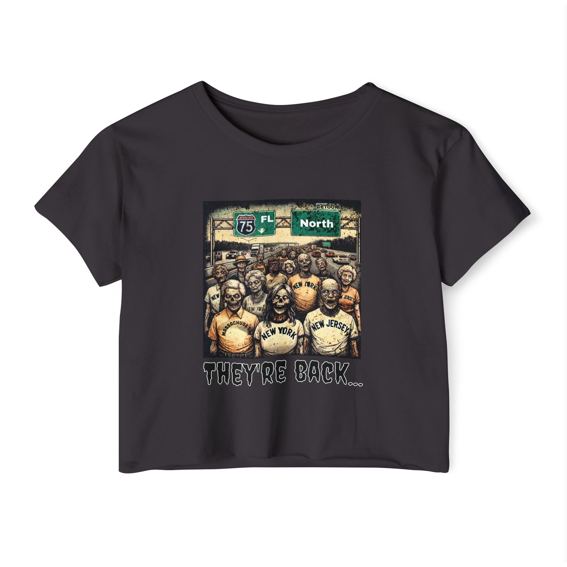 The migration is clogging up Florida’s main artery again—snowbirds rolling in on I-75 like it’s their personal driveway. This limited black crop is built for locals who’ve seen the parade of RVs, minivans, and out-of-state plates a thousand times and know exactly what’s coming. Soft, lightweight, and with a modern cropped cut, it’s the perfect piece to stay cool while the roads heat up.