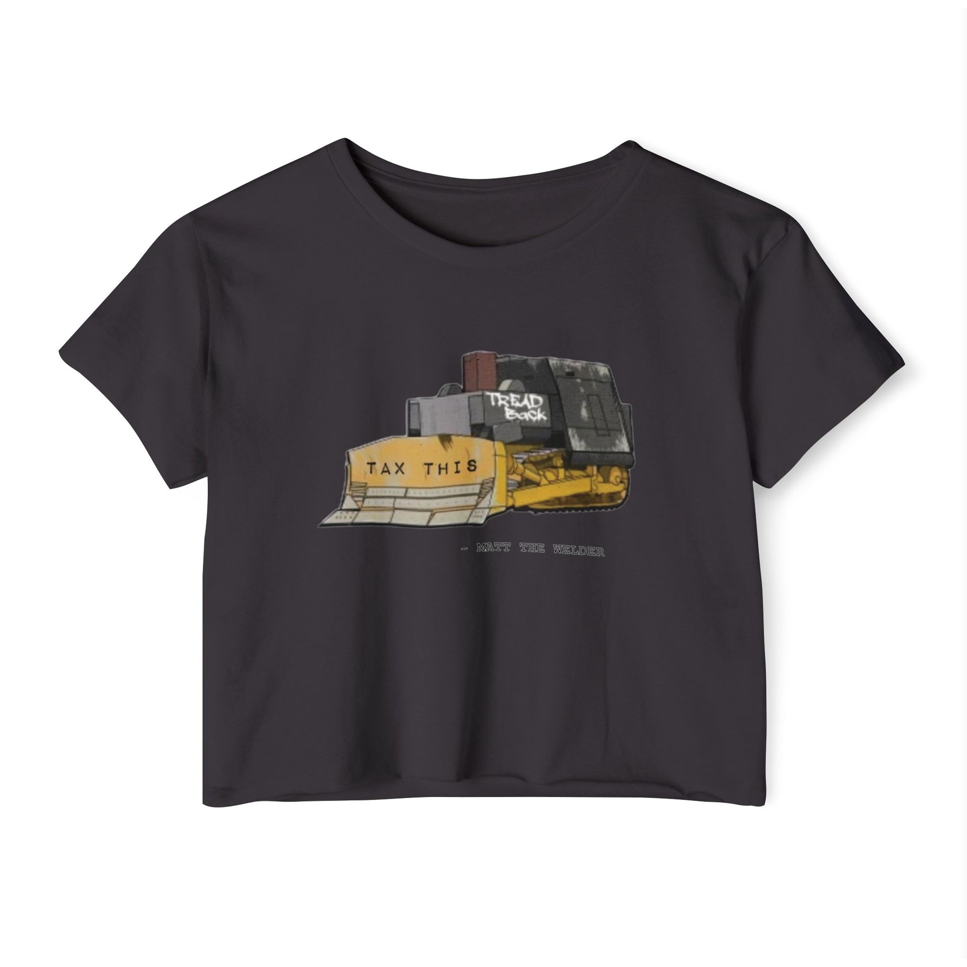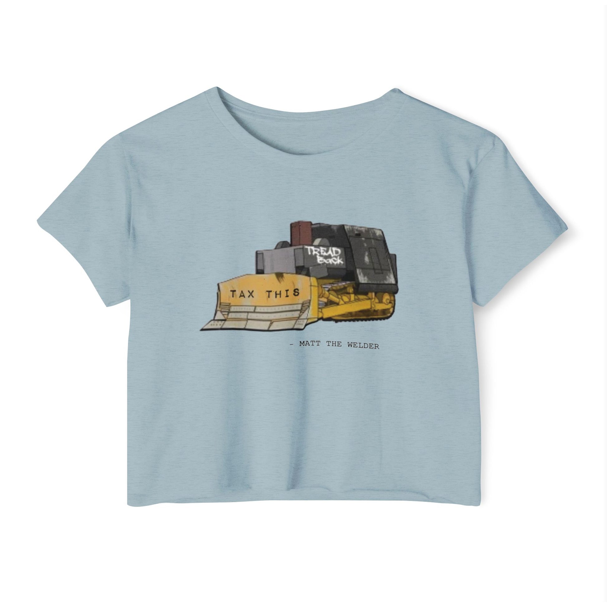 Matt’s cheeky dozer with “TAX THIS” on a breezy cropped tee—lightweight, relaxed, and Florida-ready. Clean, bold, unmistakably Matt.