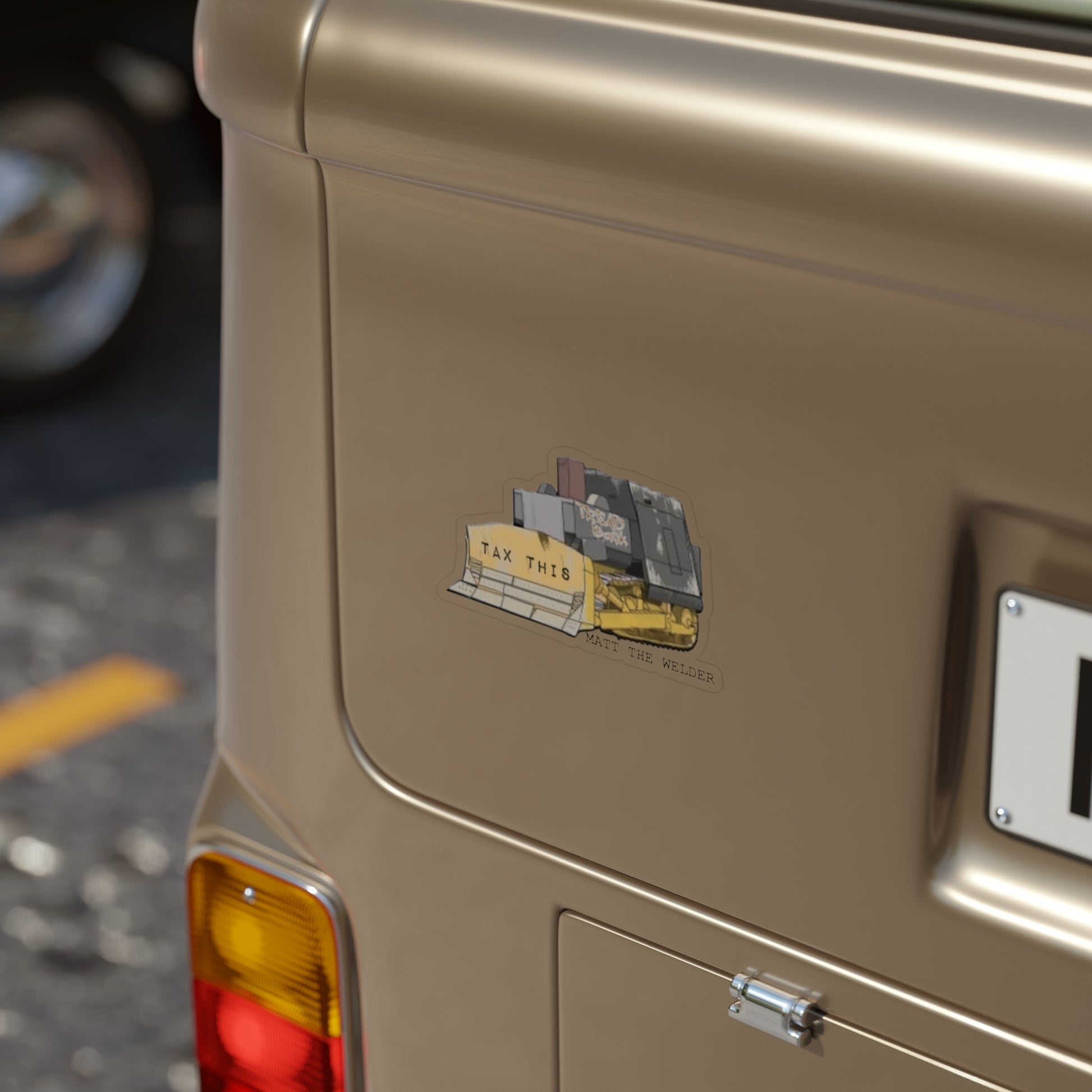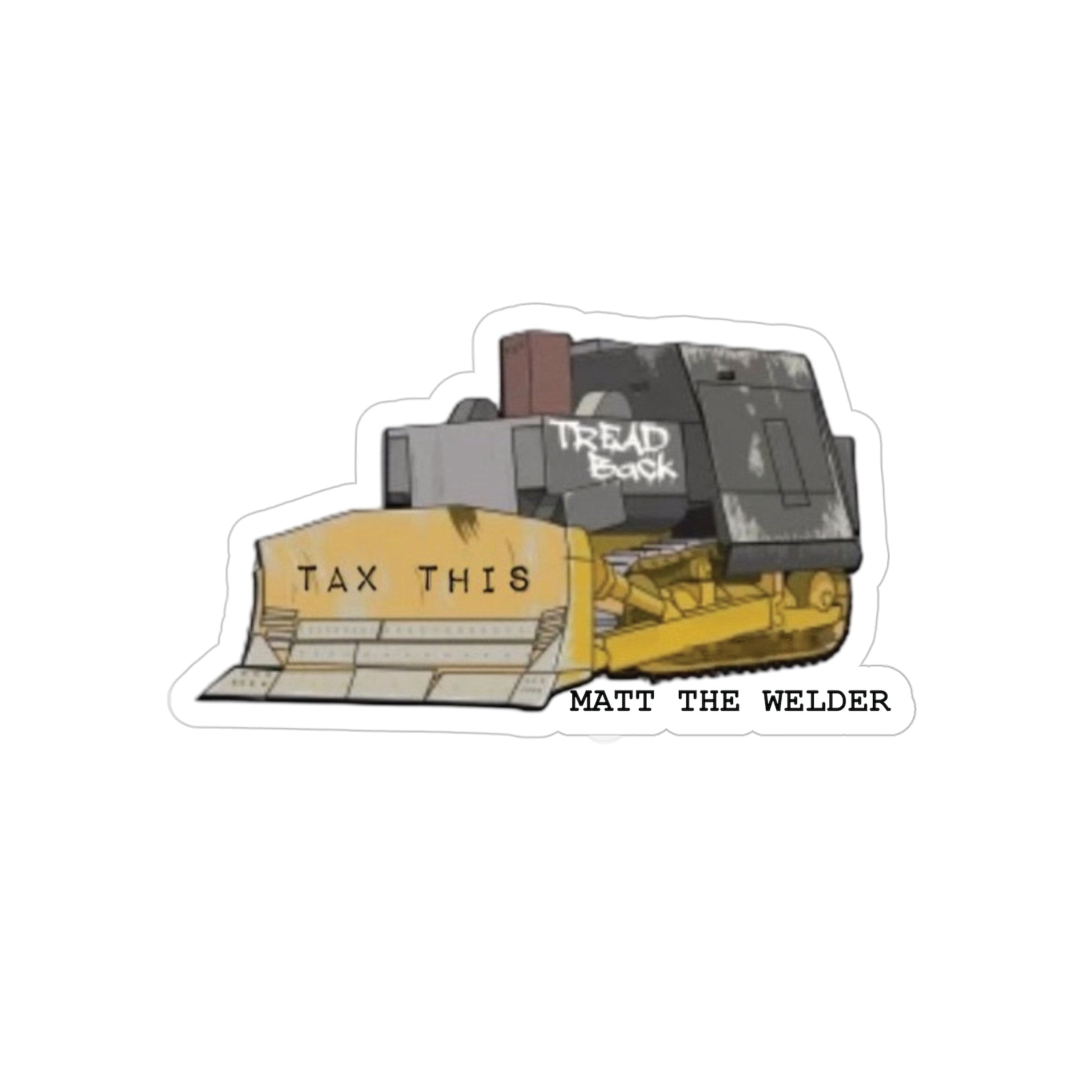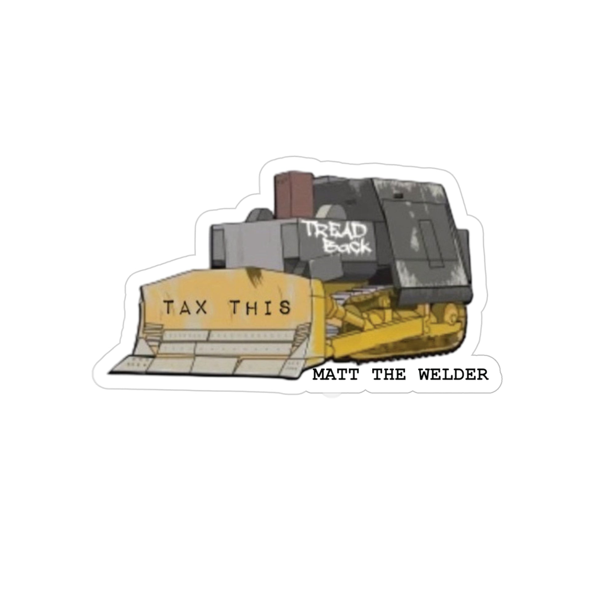 Put the “TAX THIS” dozer anywhere. This transparent vinyl decal lets your surface show through with a clean, satin look—perfect for toolboxes, coolers, hard hats, laptops, and more.