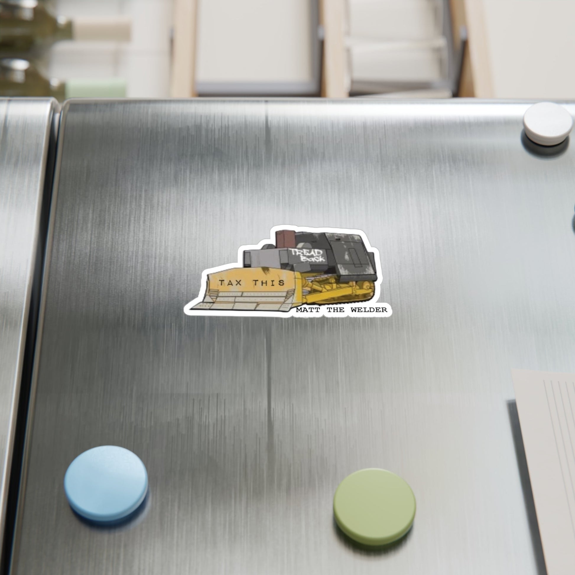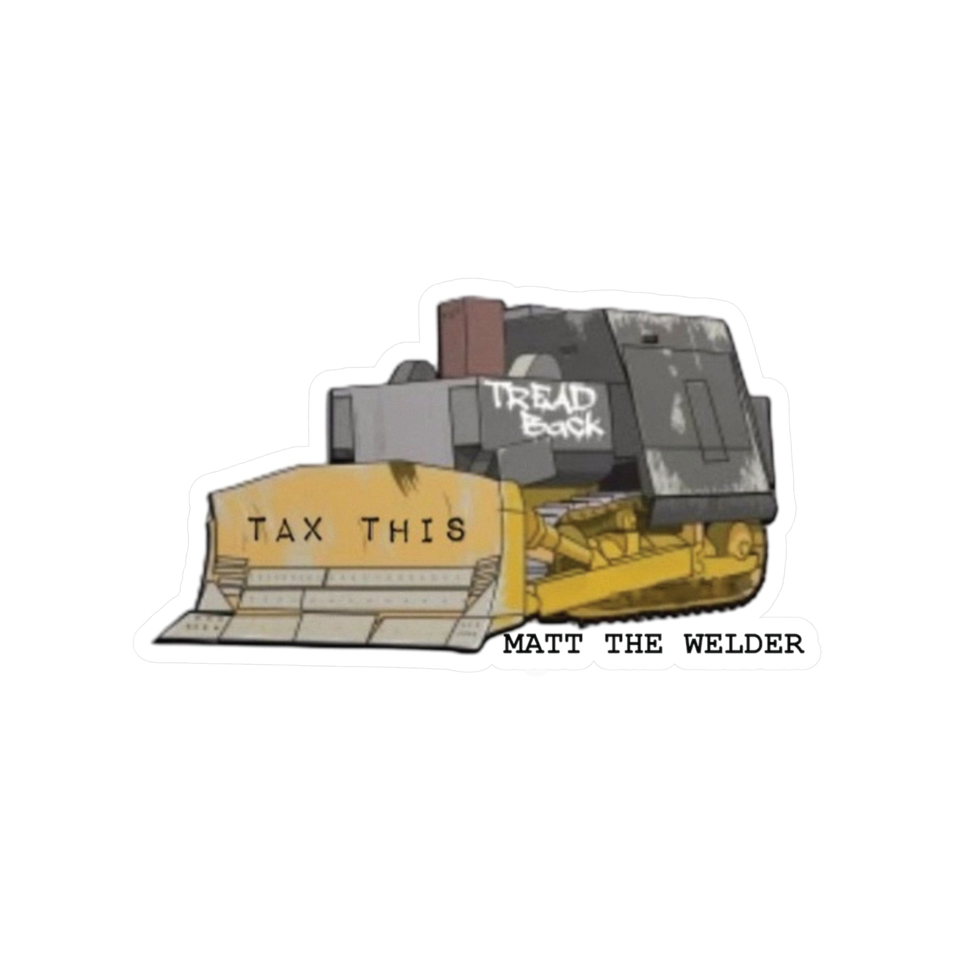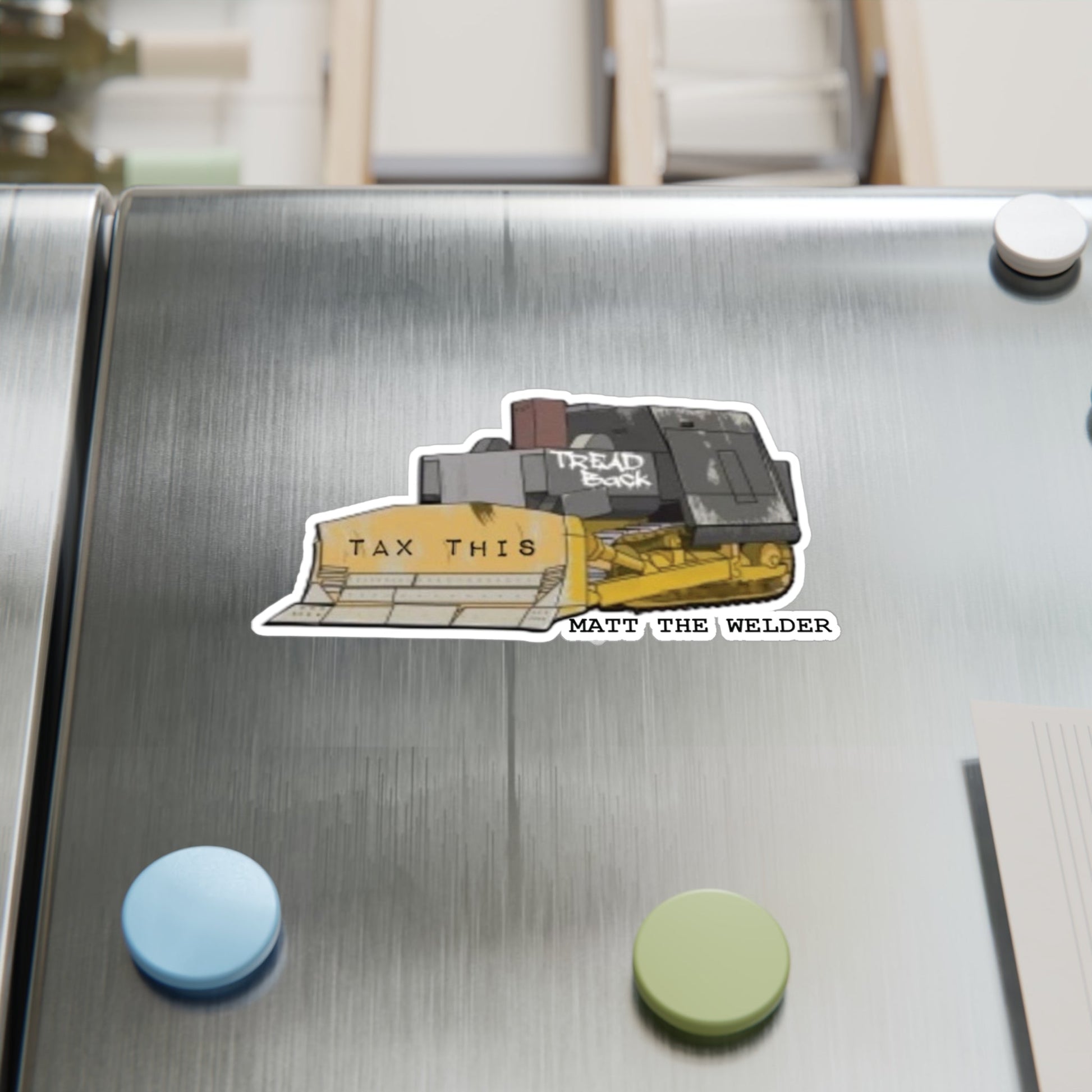 Put the “TAX THIS” dozer anywhere you want to make a point—toolbox, cooler, hard hat, laptop, tumbler, you name it.