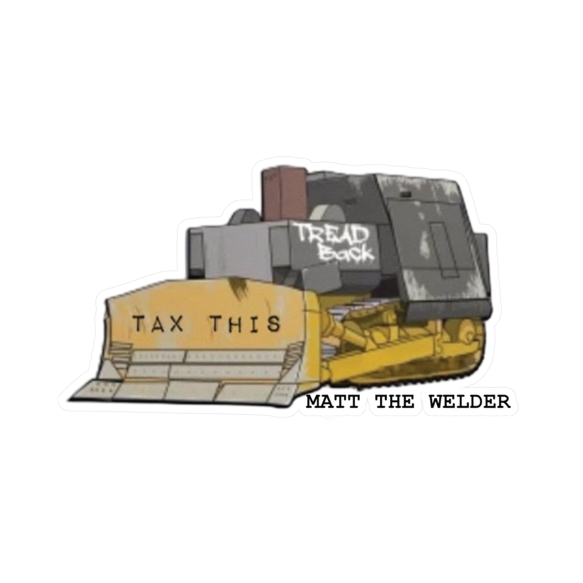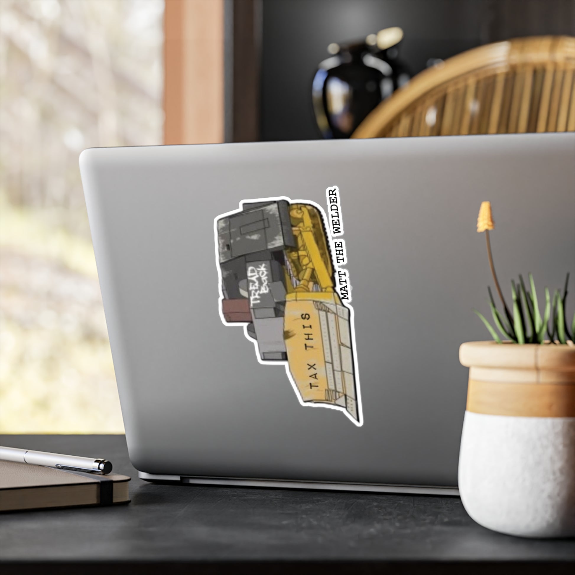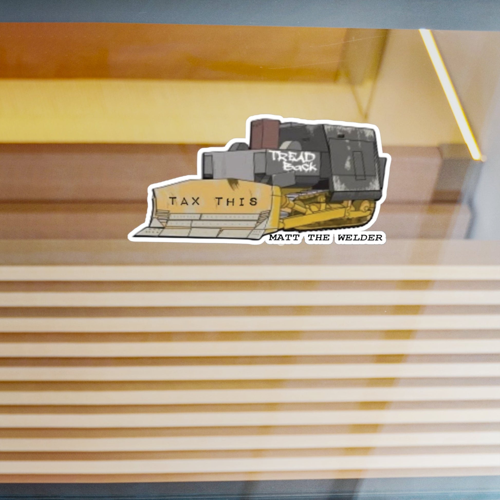 Put the “TAX THIS” dozer anywhere you want to make a point—toolbox, cooler, hard hat, laptop, tumbler, you name it.