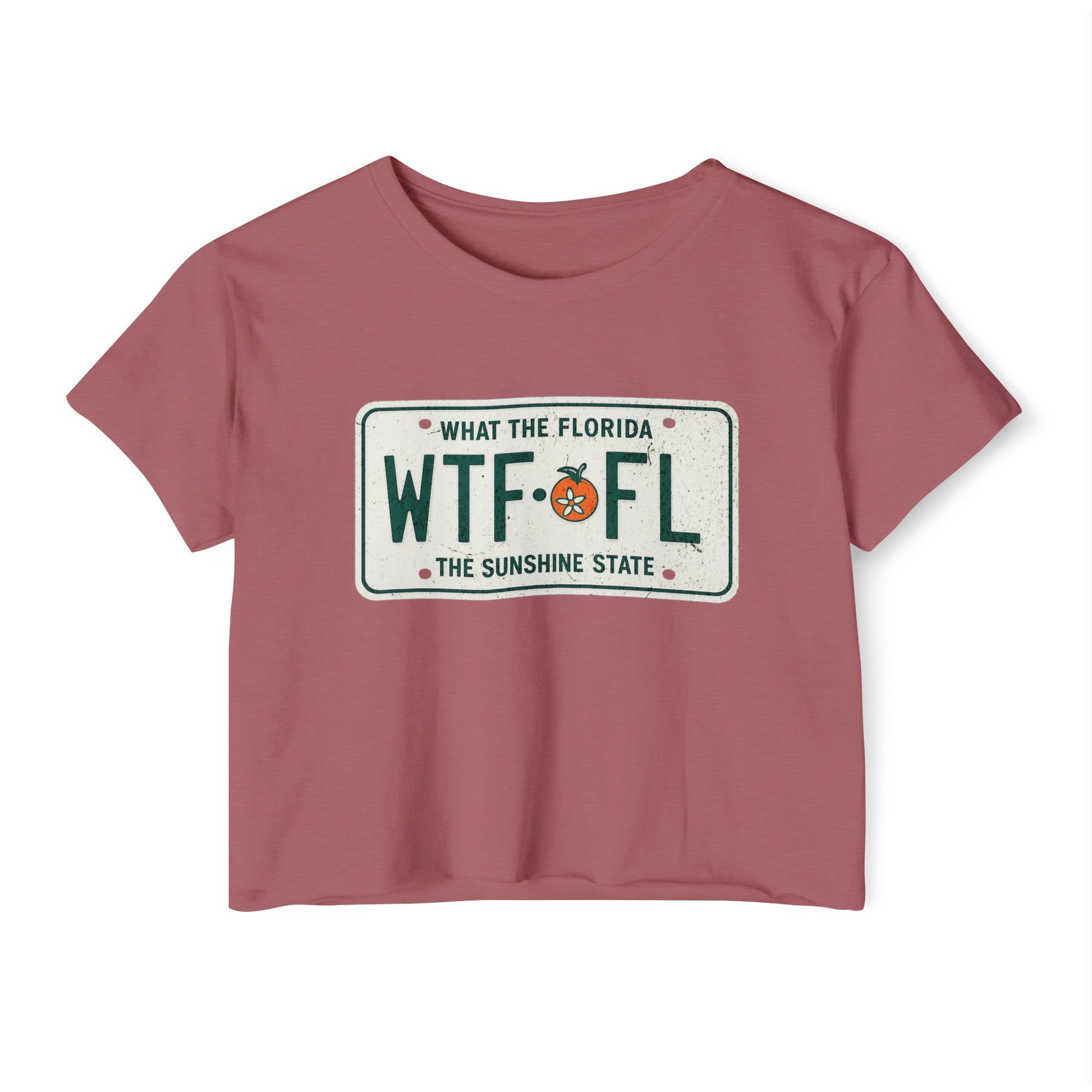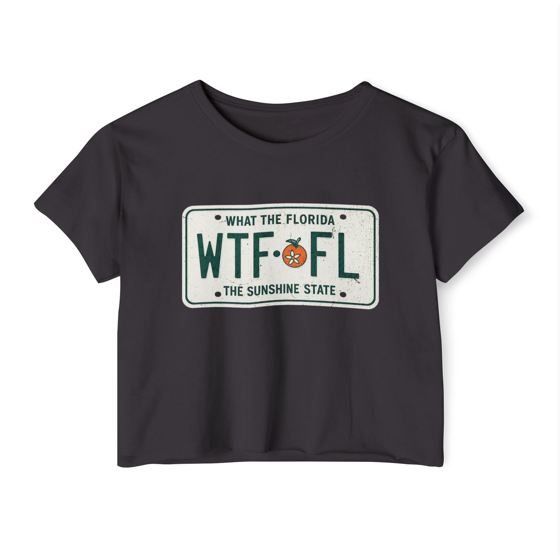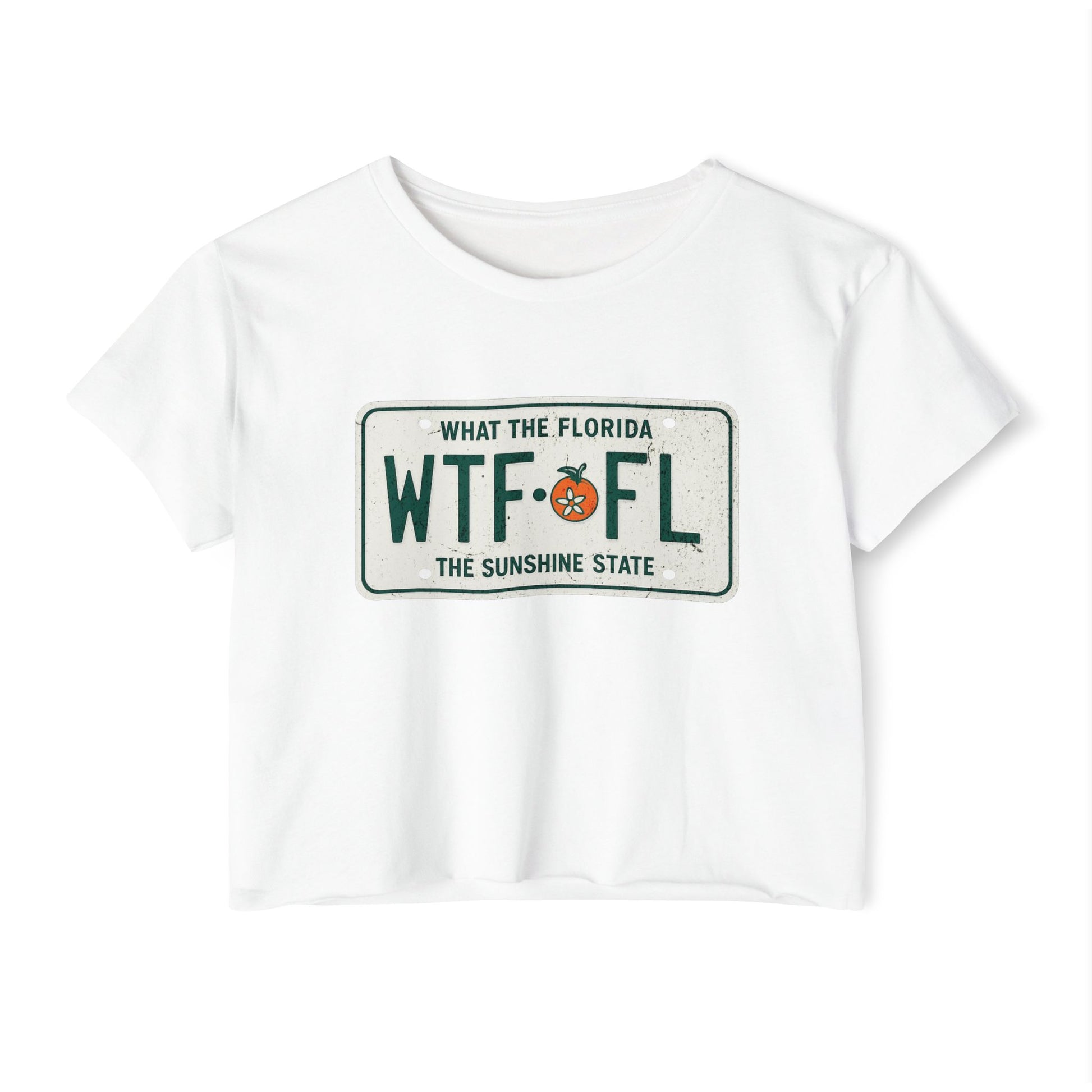 License to thrill, Florida-style. This crop tee features a vintage Sunshine State plate design with a cheeky WTF-FL twist. Bold, nostalgic, and made for sunshine lovers, itβs the perfect way to show your Florida prideβno registration required.
